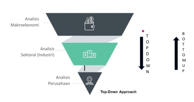 Top Down dimulai dengan menganalisa tren ekonomi secara makro kemudian mengerucut ke analisis sektoral/industri dan berakhir di analisis perusahaan. Sedangkan Bottom Up kebalikannya.