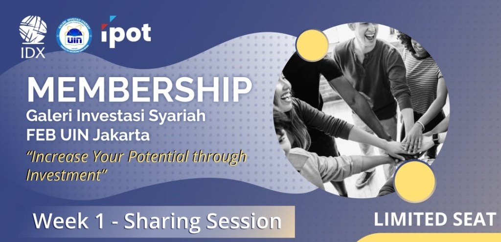 Pada hari Minggu, 22 Mei 2022, Divisi Education Galeri Investasi Syariah FEB UIN Jakarta telah mengadakan Sharing Session dengan tema “Increase Your Potential Through Investment”. Sharing Session ini merupakan bagian dari acara Membership Galeri Investasi Syariah FEB UIN Jakarta yang diselenggarakan secara online melalui media virtual meeting zoom. Pemateri pada acara ini yaitu Saudara Reza Diofanda, RTA., RSA., AWP., selaku Ketua Umum Galeri Investasi Syariah FEB UIN Jakarta dan Saudara Budi Santoso, AWP., selaku Presnas Asosiasi KSPM/S Se-Indonesia.