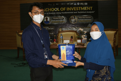 Acara selanjutnya yaitu pemberian plakat kepada pemateri yang diwakili oleh Muhammad Iqbal Rafadhany selaku ketua pelaksana SCMW 2022.