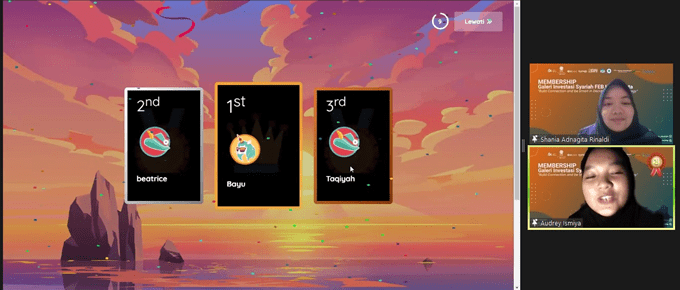 Selesai melakukan penyerahan sertifikat, acara dilanjutkan dengan melakukan quiz melalui link Quizizz yang dipimpin oleh Saudari Shania Adnagita Rinaldi dan Audrey Ismiya Yusman. Setelah melaksanakan seluruh rangkaian acara, dilakukan pembacaan doa penutup yang dibacakan oleh Ganang Bayu Saksono.