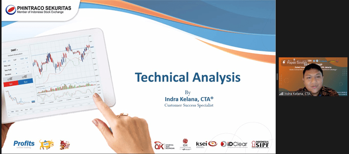 Webinar ini menjadi wadah yang berharga bagi para peserta untuk memperluas pengetahuan mereka tentang Analisis Teknikal, yang disajikan dengan penuh keterampilan dan pengalaman oleh Kak Indra Kelana, CTA, yang juga merupakan Customer Success Specialist PT Phintraco Sekuritas. Melalui pemaparan materi dan penjelasan yang mendalam, peserta diberikan wawasan yang berharga tentang bagaimana memanfaatkan data historis harga dan volume aset dalam memprediksi pergerakan harga di masa depan. Semoga pengetahuan yang diperoleh oleh para peserta dalam acara Membership Day 3 ini dapat diaplikasikan dalam strategi investasi mereka di masa depan. Terima kasih kepada semua pihak yang telah berkontribusi dalam kesuksesan acara ini dan kami berharap agar semangat belajar dan berinvestasi tetap membimbing langkah kita ke arah yang lebih baik.