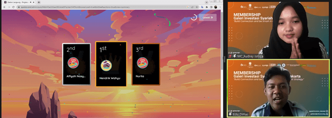 Selesai melakukan penyerahan sertifikat, acara dilanjutkan dengan melakukan quiz melalui link Quizizz yang dipimpin oleh Saudara Dimas Ikhsanul Hakim Syauqi. Setelah melaksanakan seluruh rangkaian acara dilakukan pembacaan doa penutup yang dibacakan oleh Ilham Ananda Firdaus.