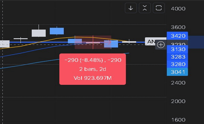 Faktanya, harga saham PT ANTAM sempat mengalami tekanan karena sentimen negatif dari pasar terkait masalah ini. Tercatat pada tanggal 10 juni 2025 harga saham ANTM mengalami penurunan dari 3420 sampai 3130 di tanggaal 12 juni 2025, yang mencerminkan penurunan sebesar 8,48%.